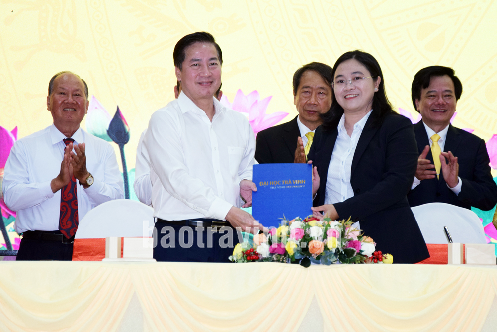 Bác sĩ CK II Huỳnh Thị Hồng Nhung, Giám đốc Bệnh viện Trường ĐHTV ký kết hợp tác với PGS-TS Bác sĩ Trần Vĩnh Hưng, Giám đốc Bệnh Bình Dân, Thành phố Hồ Chí Minh.