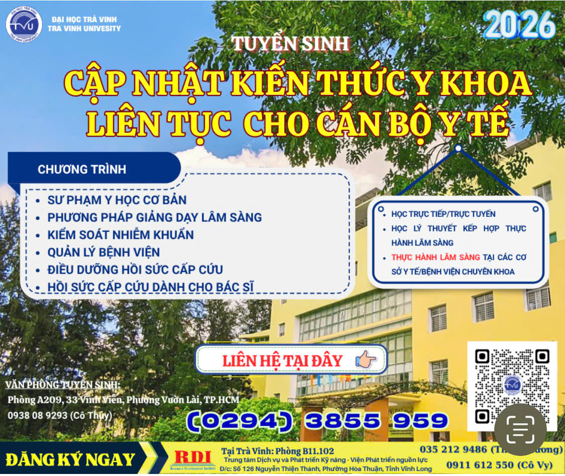 TUYỂN SINH CẬP NHẬT KIẾN THỨC Y KHOA LIÊN TỤC CHO CÁN BỘ Y TẾ 2026